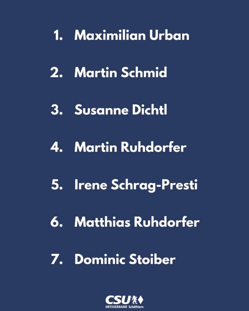 Als lokale Vertretung der Christlich-Sozialen Union (CSU) sind wir stolz darauf, eine lebendige politische Gemeinschaft in Schäftlarn zu repräsentieren. Unser Engagement richtet sich dabei stets nach den Grundwerten der CSU: christlich-sozial, bürgernah und verantwortungsbewusst. Auf dieser Plattform möchten wir Sie herzlich dazu einladen, mehr über unsere Arbeit, unsere Ziele und unsere Mitglieder zu erfahren. Entdecken Sie, wie wir uns für die Belange unserer Bürgerinnen und Bürger einsetzen, lokale Herausforderungen meistern und gemeinsam eine lebenswerte Zukunft gestalten. Tauchen Sie ein in die vielfältigen Facetten unserer Gemeindepolitik und erfahren Sie, wie Sie aktiv an unserem politischen Gestaltungsprozess teilnehmen können. Wir freuen uns darauf, mit Ihnen im Dialog zu stehen und laden Sie ein, ein Teil unserer politischen Familie zu werden. Willkommen bei der CSU Schäftlarn – Ihre Stimme für eine starke und zukunftsorientierte Gemeindepolitik!