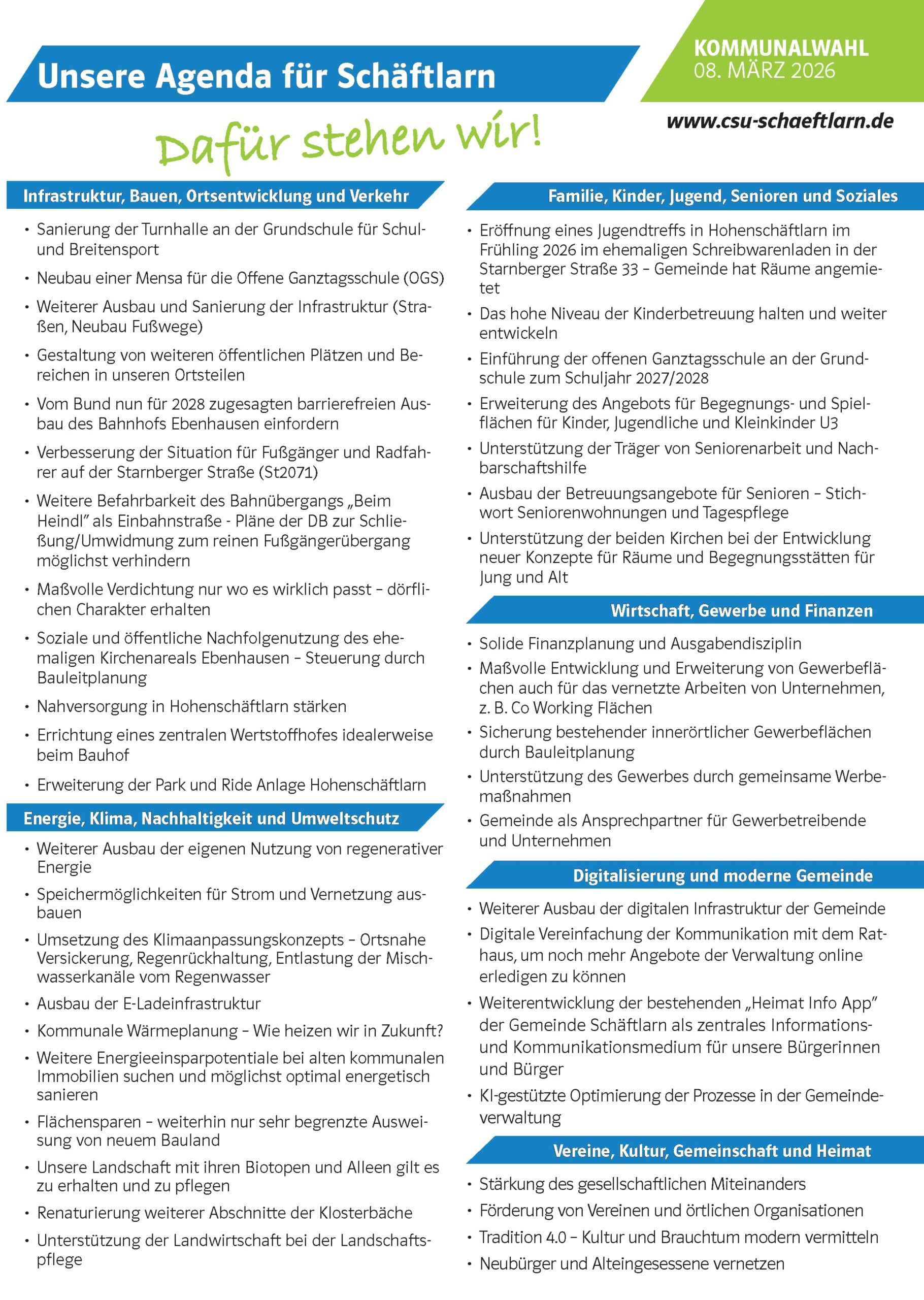 Unsere Agenda für Schäftlarn
