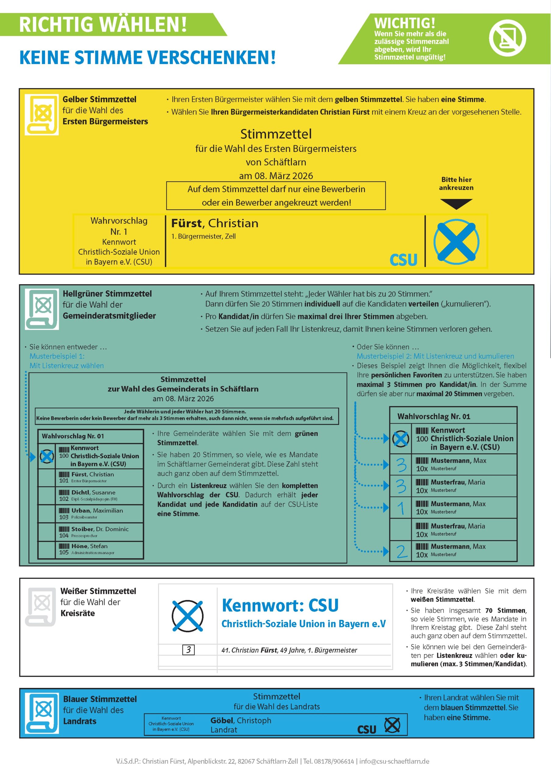und die Kandidatinnen und Kandidaten der Liste 1 / CSU Schäftlarn in den Gemeinderat.